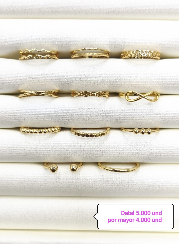 En Marena ofrecemos anillos de bisutería de alta calidad elaborados en metal base con acabados en covergold y baño de rodio dorado de fantasía, ideales para quienes buscan joyería moderna, elegante y accesible. Nuestros anillos dorados destacan por su brillo intenso, diseño actual y excelente relación calidad-precio, convirtiéndose en la opción perfecta para complementar cualquier look con estilo y sofisticación, sin el costo del oro macizo y con los cuidados adecuados para una mayor durabilidad.